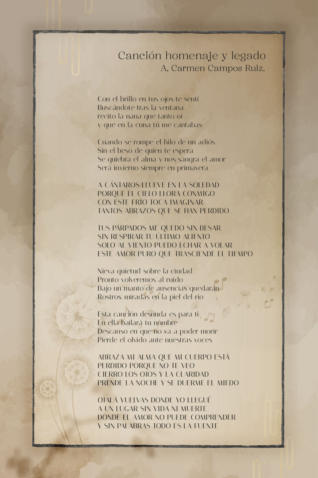 "Canción en mp3 y texto en formato imprimible.